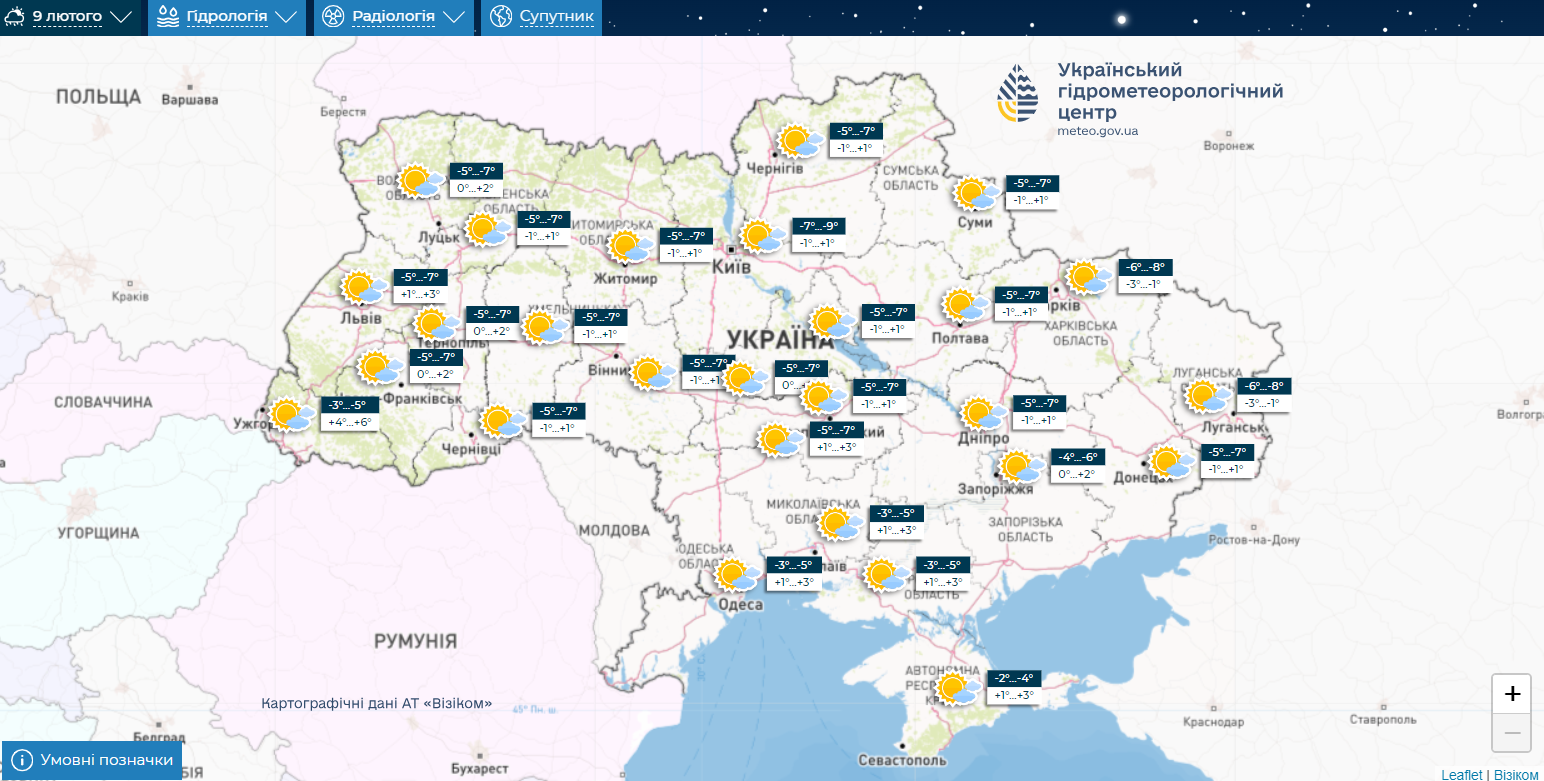 Погода в Украине 6 – 9 февраля / Карты Укргидрометцентра