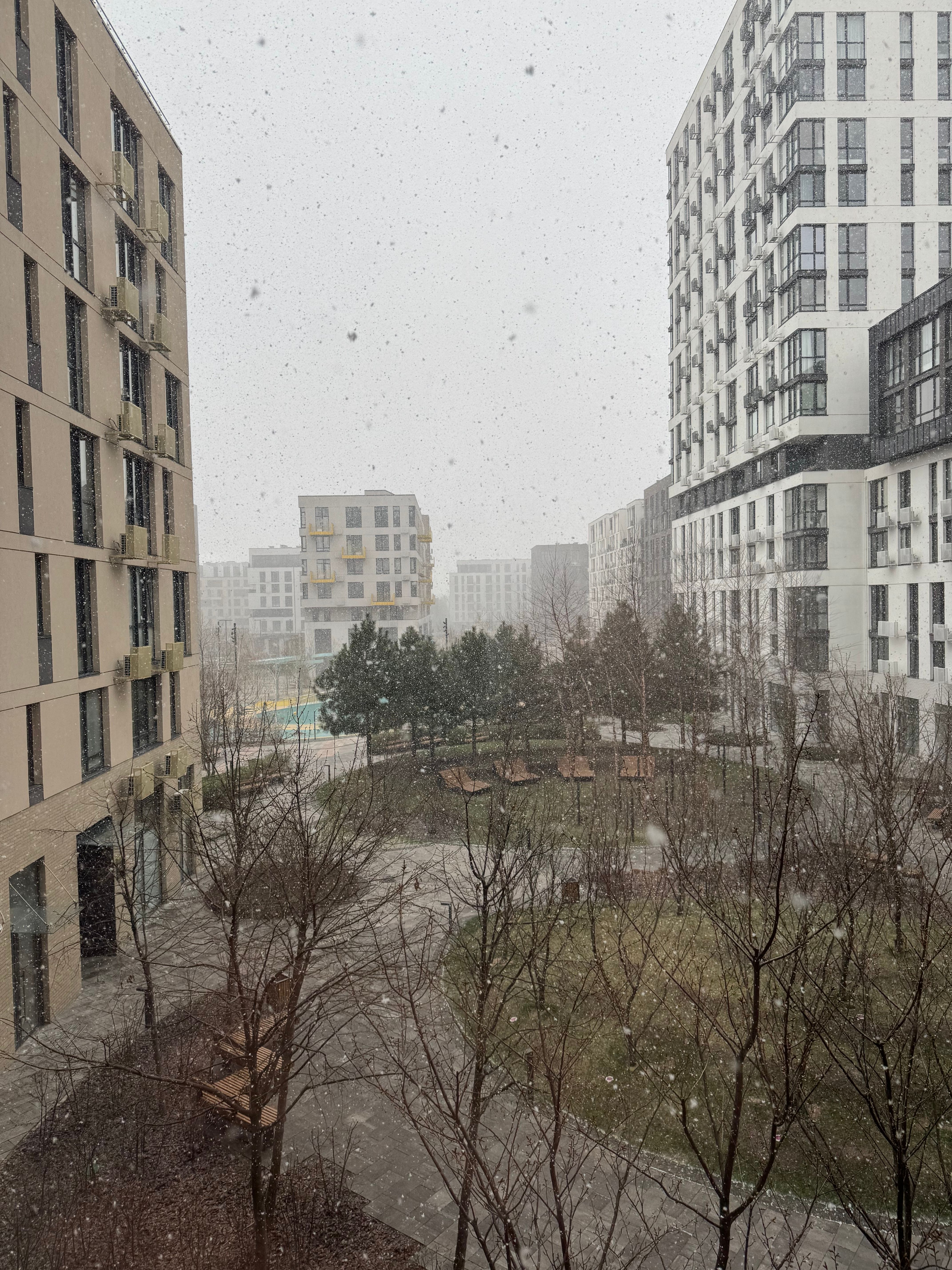 Местами в столице небо затянуло облаками и выпал небольшой снег. В конце концов он почти быстро растаял из-за плюсовой температуры в городе.