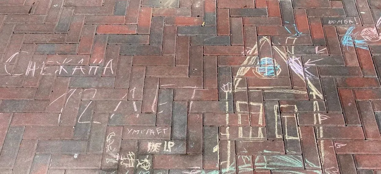 Мариуполь. Детский рисунок на асфальте. Без слов,