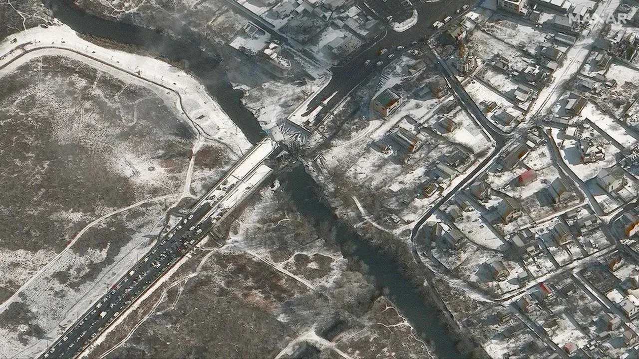 На новых спутниковых снимках показали разбитый мост в Ирпене и группировку бронетехники в аэропорту "Антонов".