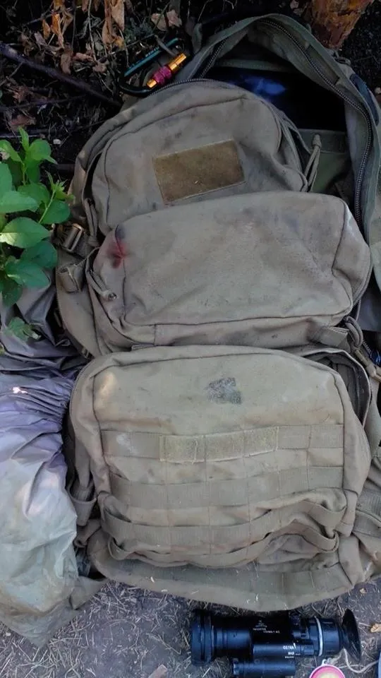 Один из российских спецназовцев был ранен и оставил на месте боя рюкзак. В рюкзаке найдены прицел снайперский ночного видения, форма, перчатки, балаклава, шнур альпиниста, две пачки патронов.