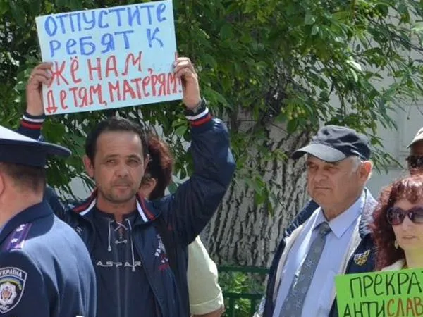 Круглый стол пикетировали сторонники пророссийских организаций. Немногочисленная группа пикетчиков требовала остановить антитеррористическую операцию на востоке Украины.