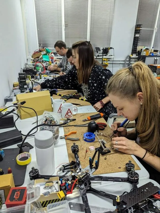 Волонтеры паяют дроны в волонтерском центре "Эйприл" / Фото предоставлено Юрием Танасийчуком