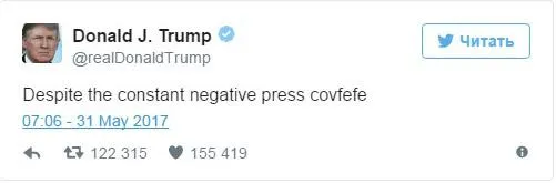 "Несмотря на постоянный отрицательный пресс сovfefe", – написал Трамп.