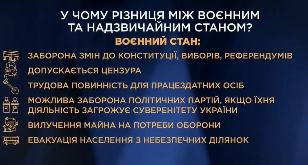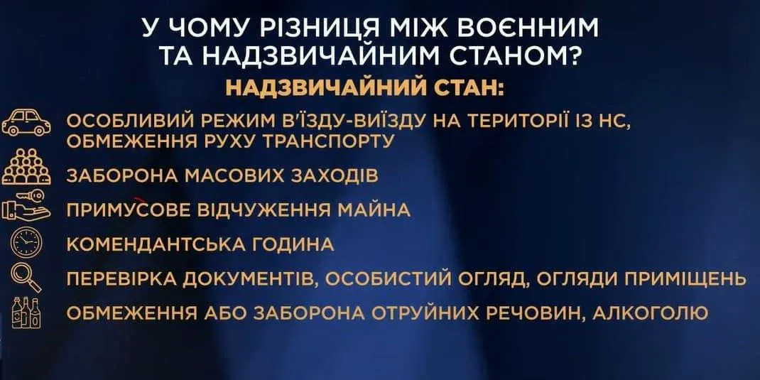 В чем разница между военным и чрезвычайным положением? / Инфографики из фейсбука Николая Беззубенко