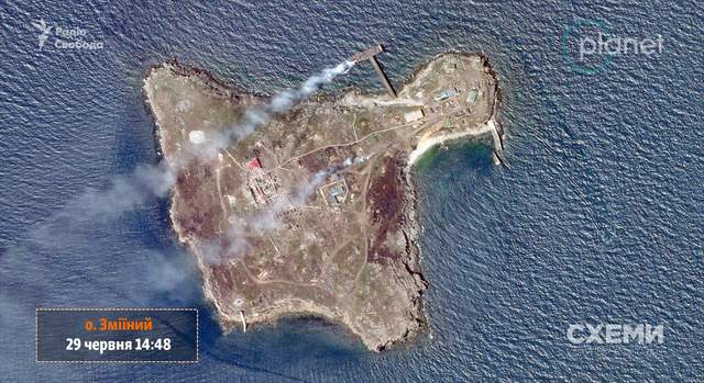 В объединенном командовании "Юг" ранее сообщили, что наши бойцы начали прицельно стрелять по Змеиному 29 июня примерно в 14:00. Обстрел продолжался с 29 по 30 июня. Журналисты получили 2 спутниковых фото, которые демонстрируют обстановку на острове до и после обстрела.