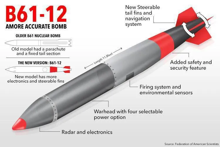 Как стало известно, B61-13 будет доставлен с помощью современных самолетов. Эта бомба заменит некоторые B61-7 в нынешних ядерных арсеналах. Также она будет иметь мощность, аналогичную B61-7.