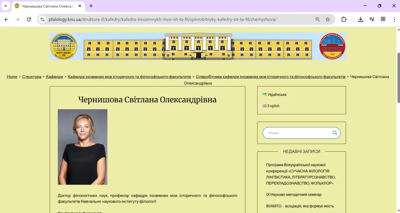 Светлана Чернышова – доктор филологических наук, профессор кафедры иностранных языков исторического и философского факультетов Учебно-научного института филологии.