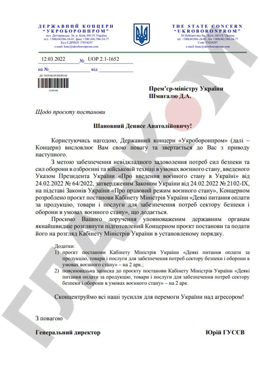 Из них становится понятно, что инициатором скандального правительственного постановления №335 был государственный концерн "Укроборонпром" и его тогдашний глава Юрий Гусев. Именно этим постановлением руководствовалась Госаудислужба, которая зафиксировала, что оборонные предприятия якобы нанесли государству ущерб на 2,5 миллиарда гривен.
