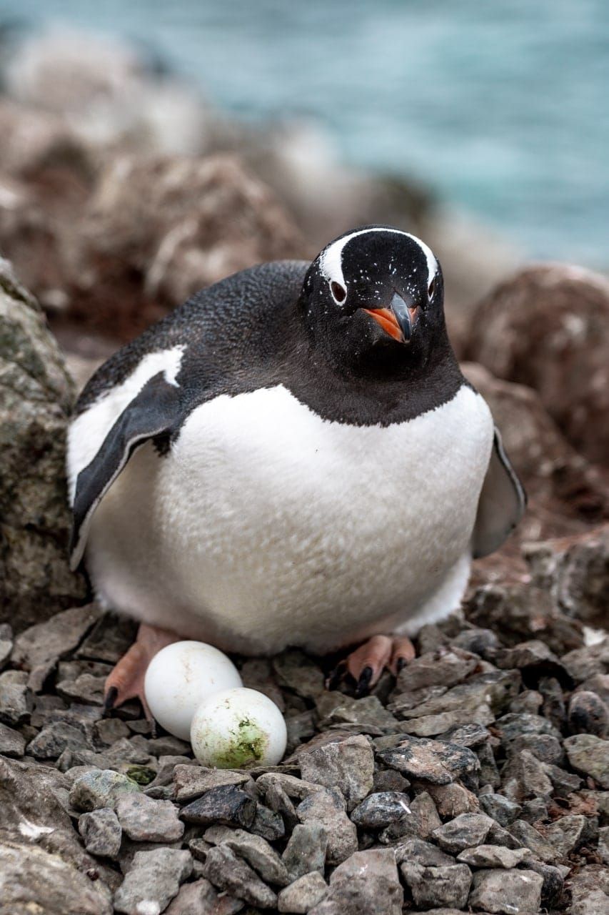 Первое яйцо появилось на мысе Пингвин-поинт – на участке, где меньше снега и гнезда тщательно вымощены камешками.