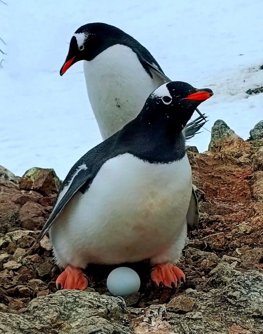 Из отложенных яиц птенцы вылупляются чуть больше, чем через месяц, так что ждем первенцев в начале декабря! Кстати, и за яйцами, и за детенышами ухаживают оба родителя. Они это делают по очереди: пока кто-то питается в океане, другой оберегает гнездо,