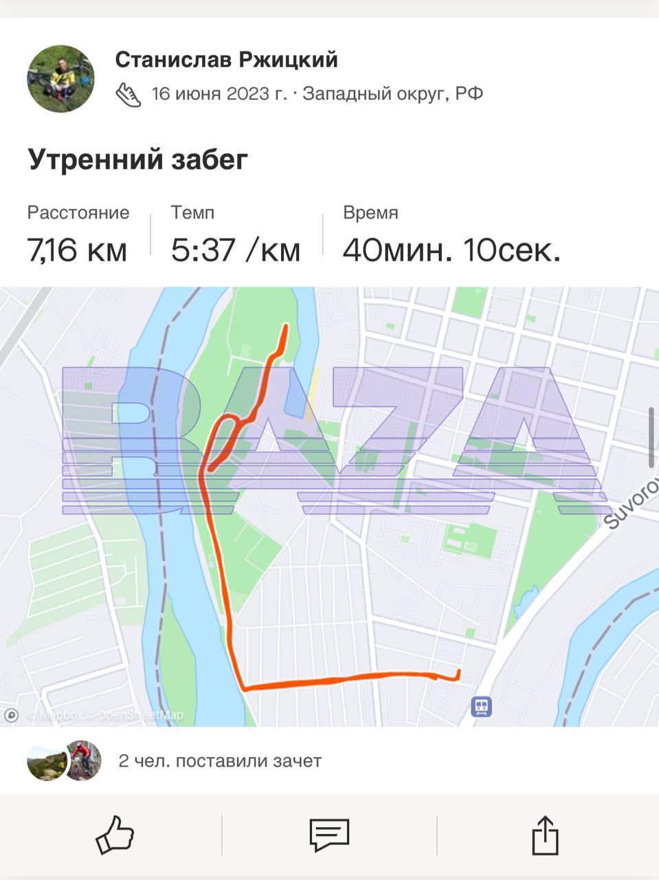 Ржицкий публиковал свои маршруты пробежек в сети / Фото из российских телеграм-каналов