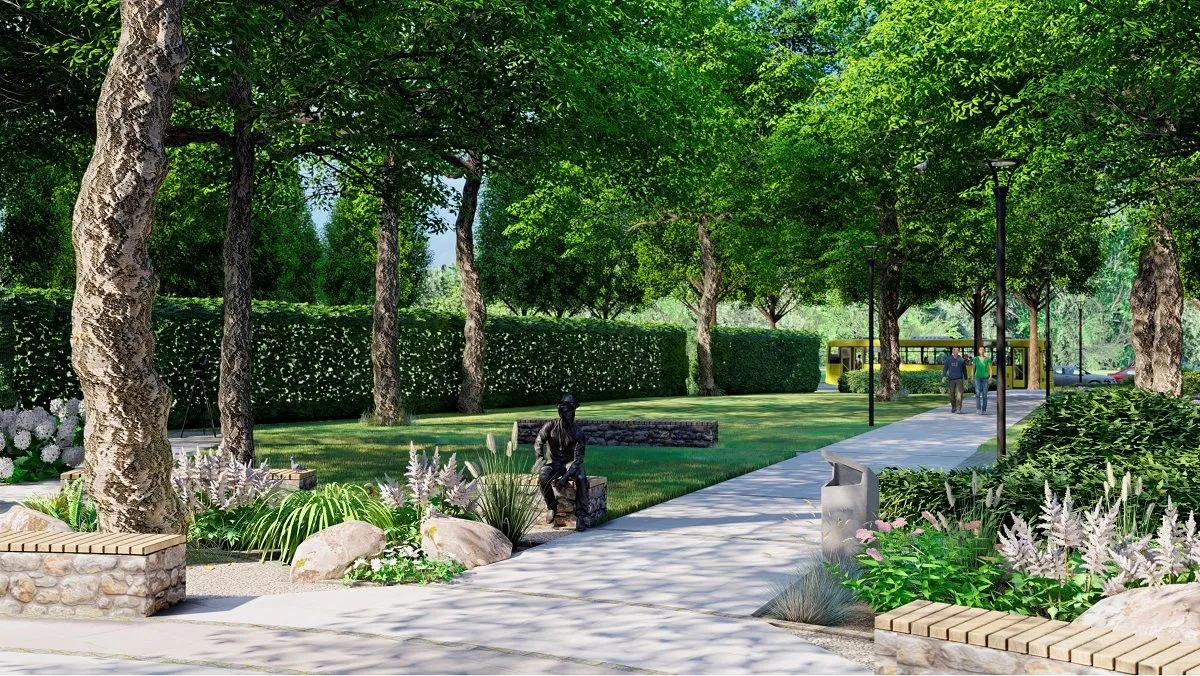 Зеленую зону планируют назвать "сквер Львовских художников", из-за его расположения на улице Львовской. Появятся лавочки, а посреди сквера будет амфитеатр, к которому проложат дорожки. К тому же здесь оборудуют детскую и спортивную площадки. Согласно проекту более 70% территории ЖК Chalet будет отведено под зеленую зону.