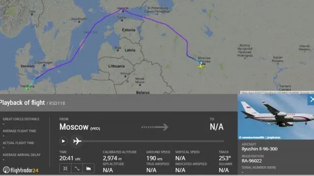 Как видно из карты FlightRadar24, самолет с регистрационным номером RA-96022, на котором летел Владимир Путин, сделал крюк в 500 километров.