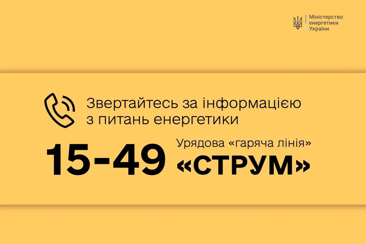 Как сообщили в Минэнерго, на "горячую линию" могут обратиться как и бытовые потребители, так и бизнес. Целью работы "СТРУМ" является обеспечение украинцев всей необходимой информацией.
