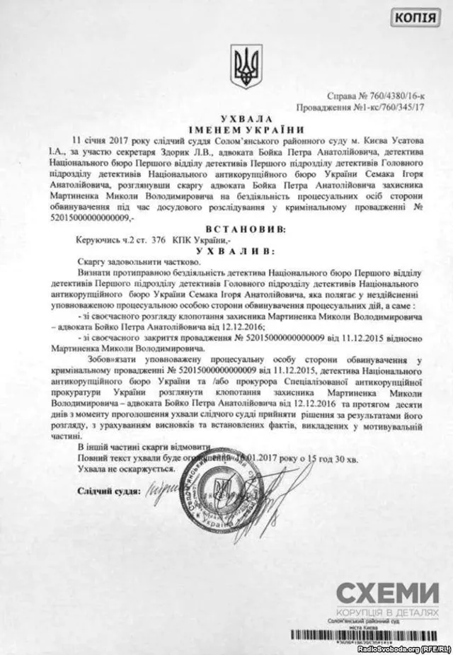 Ранее пресс-служба экс-депутата распространила сообщение, что 11 января суд обязал НАБУ закрыть уголовное производство, в котором фигурирует Мартыненко".