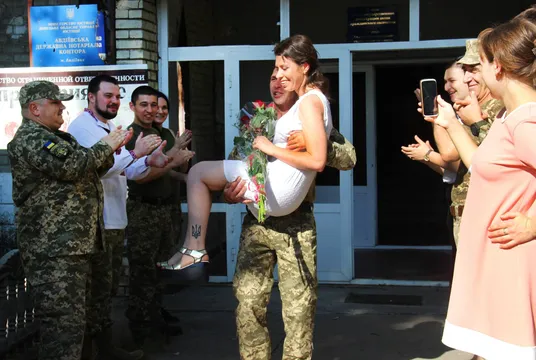 В тот солнечный день впервые за несколько месяцев был настоящий день тишины. После двух ночных обстрелов в зоне АТО боевики ни разу не применили оружие в светлое время суток. В этом присутствует определенный символизм и для новоиспеченных молодоженов, которые планируют в мирное время отгулять настоящую громкую украинскую свадьбу.