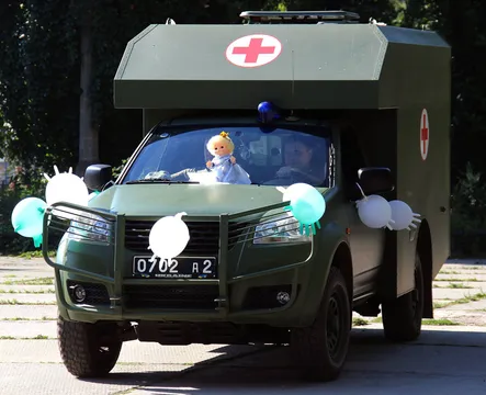 Несколько санитарных автомобилей, украшенные шариками и надутыми медицинскими перчатками, повезли молодоженов по улицам Авдеевки – несколько сотен метров от места регистрации до – части.