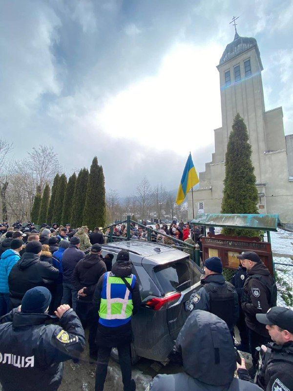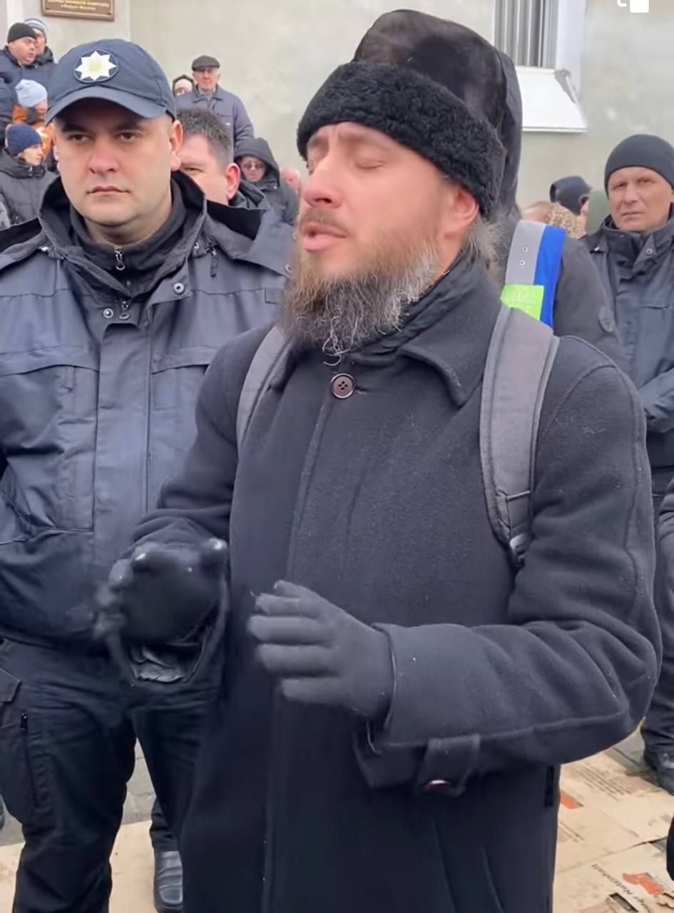 На видео, которое он опубликовал, можно увидеть в толпе военнослужащих и полицейских. Местные жители также пришли под церковь с украинскими флагами и скандировали "Долой московского попа!" По решению 1100 человек, храм Рождества Богородицы также перешел в ПЦУ.