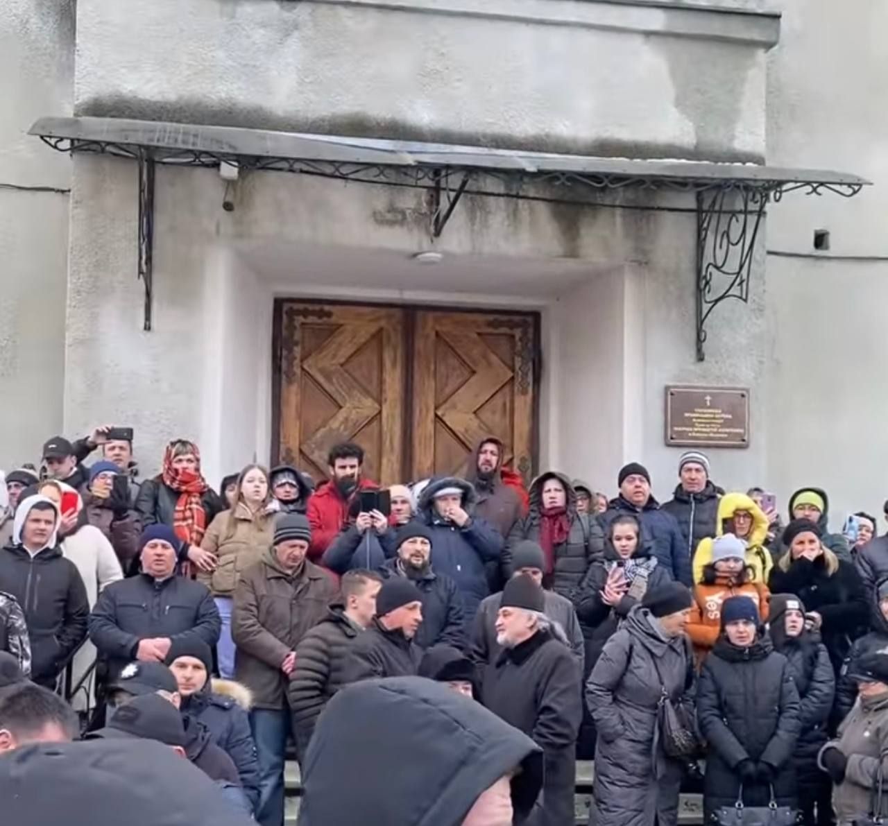 У храма начались потасовки. Однако община отстояла свое право и зашла в него.