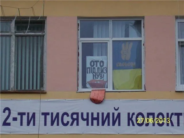 Официальный повод, почему на офисе Ковальчука появилась надпись, неизвесен.