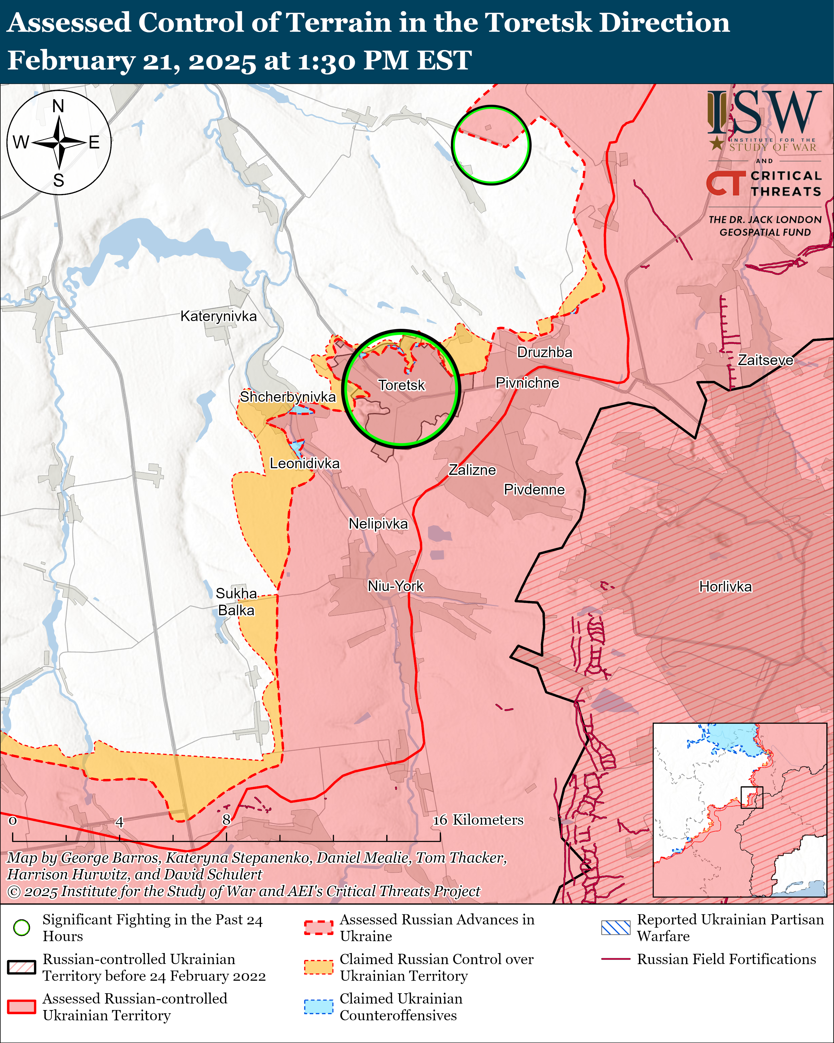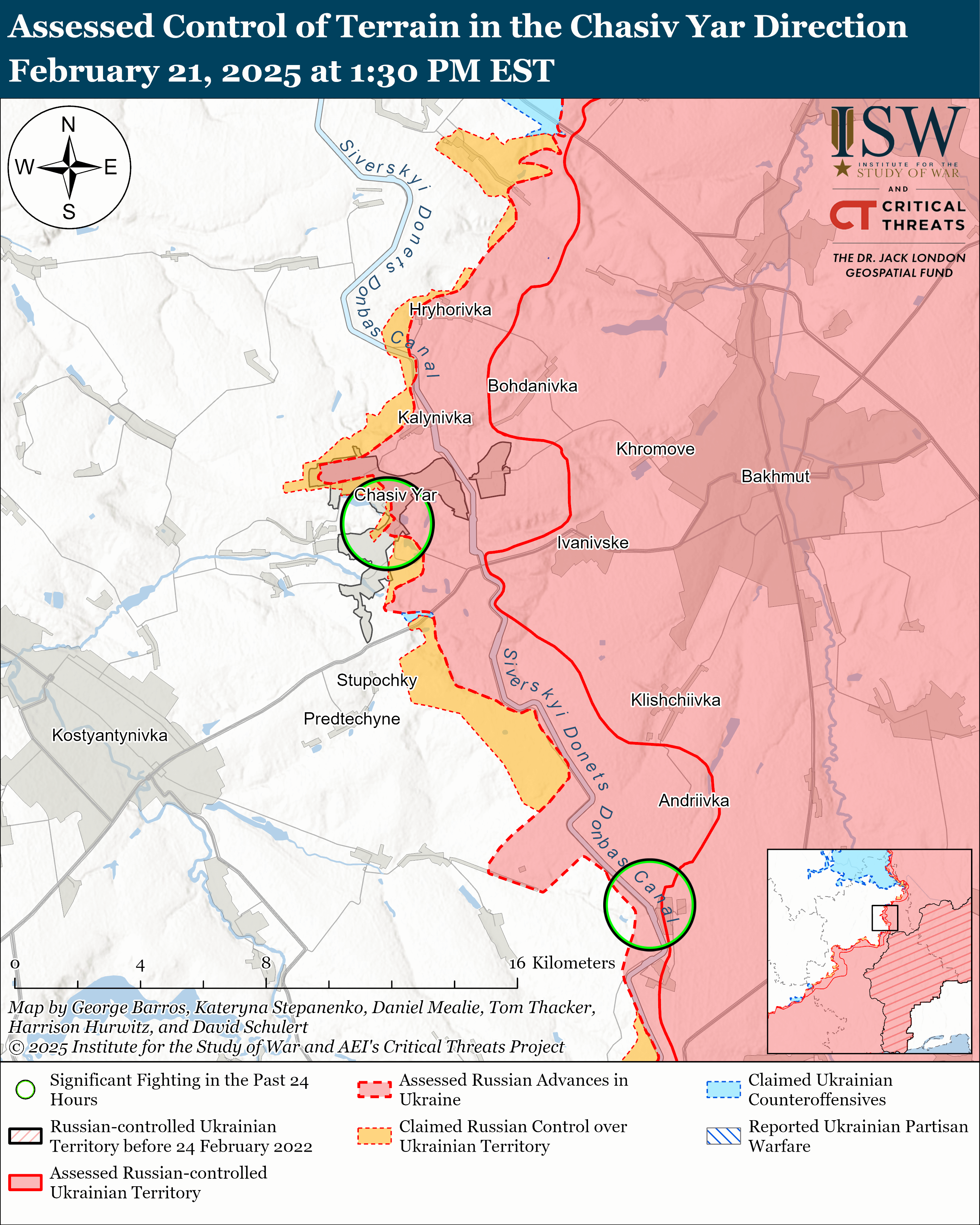 Боевые действия в Украине и России за 21 февраля / Карты ISW