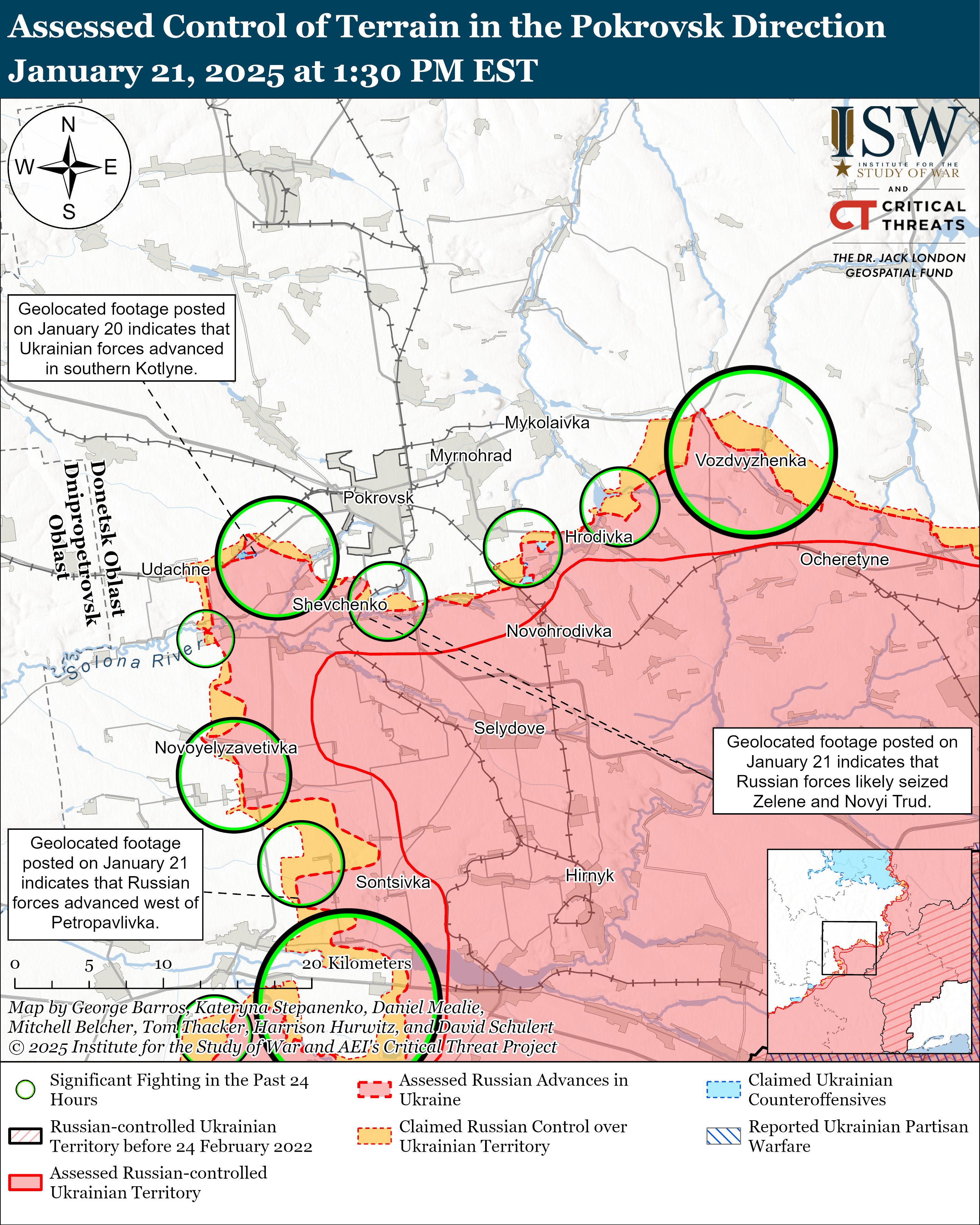 Боевые действия в Украине и России за 21 января / Карты ISW