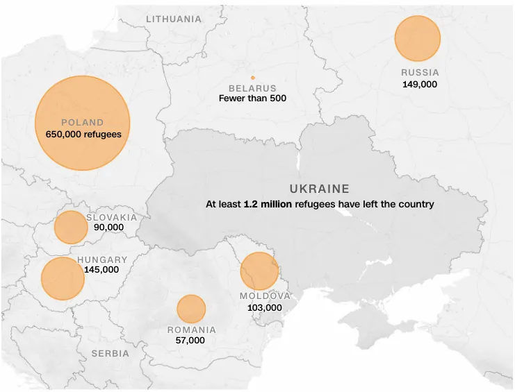 Куда выезжали украинцы на фоне войны / Карта CNN