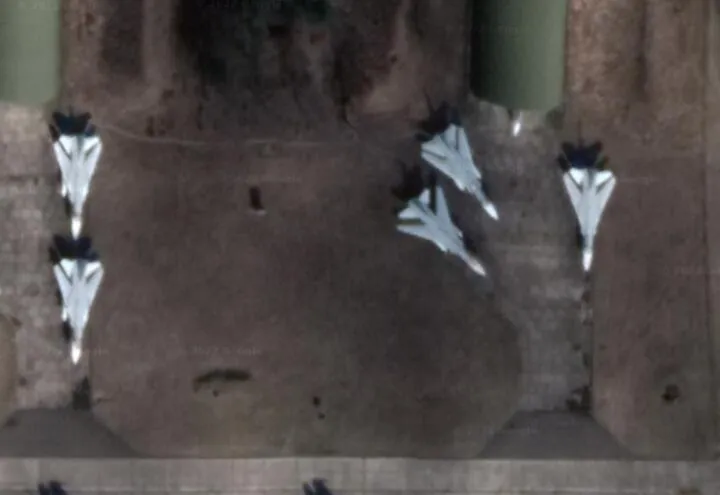 Белорусские Су-24М на стоянке в 61-й авиабазе возле Барановичей, апрель 2022 года / иллюстрация Google Maps