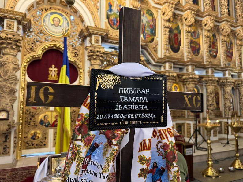 В Свято-Успенском соборе ПЦУ попрощались с 64-летней Тамарой Пивовар, которая получила тяжелые ранения из-за удара по ТЦК в Полтаве. Врачи в течение нескольких дней боролись за ее жизнь. Уже 6 июля женщина, к сожалению, погибла.