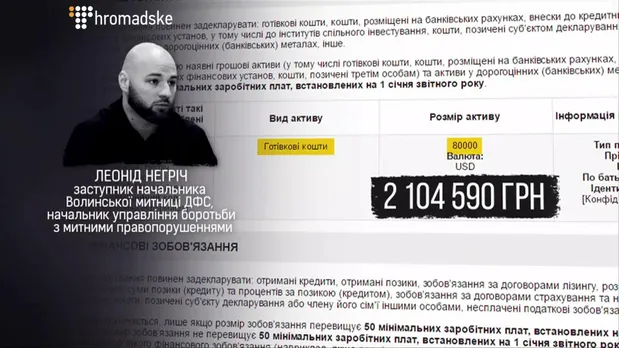 Заместитель начальника Волынской таможни ГСФ Леонид Нигрич за год получил чуть меньше 65 тыся гривен зарплаты. Но количество наличных денег у него превышает его заработок в разы.