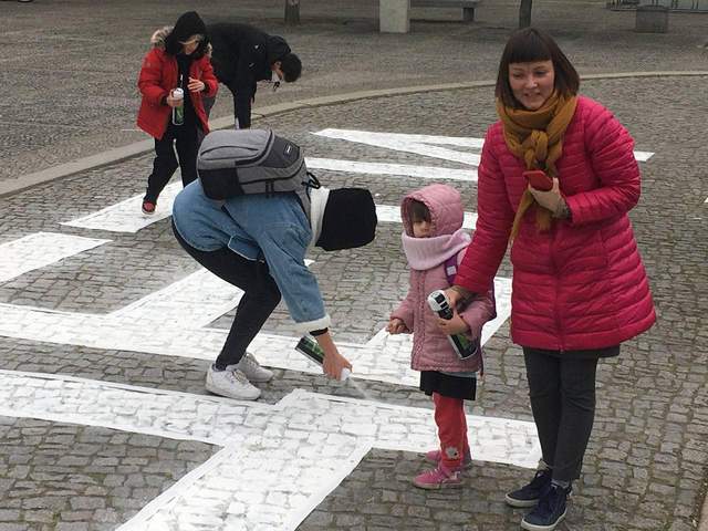 Актеры, активисты, украинские дипломаты в Берлине писали "дети" заглавными белыми буквами. Так же было написано на русском на площади возле театра в Мариуполе, куда россияне бросили бомбу.
