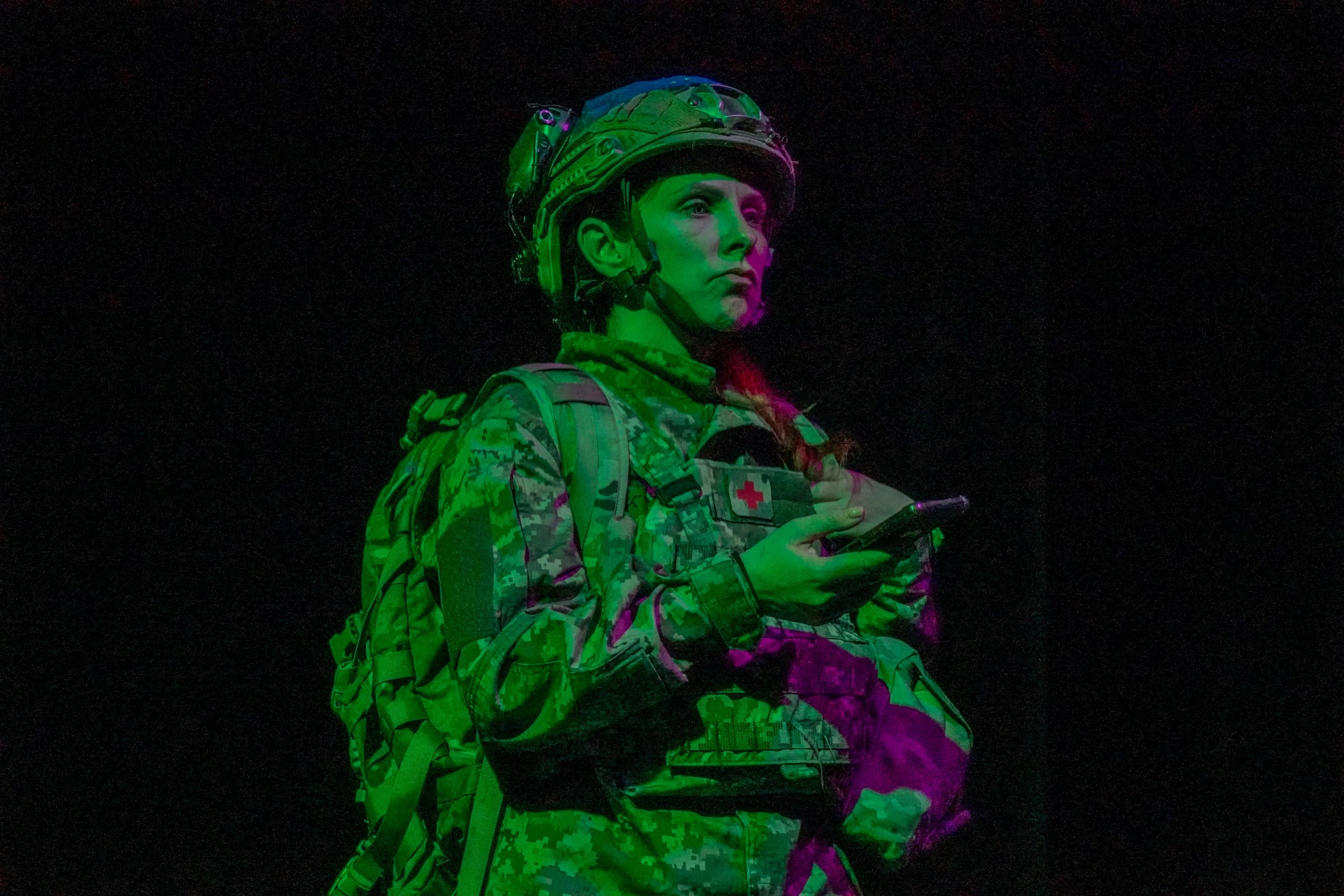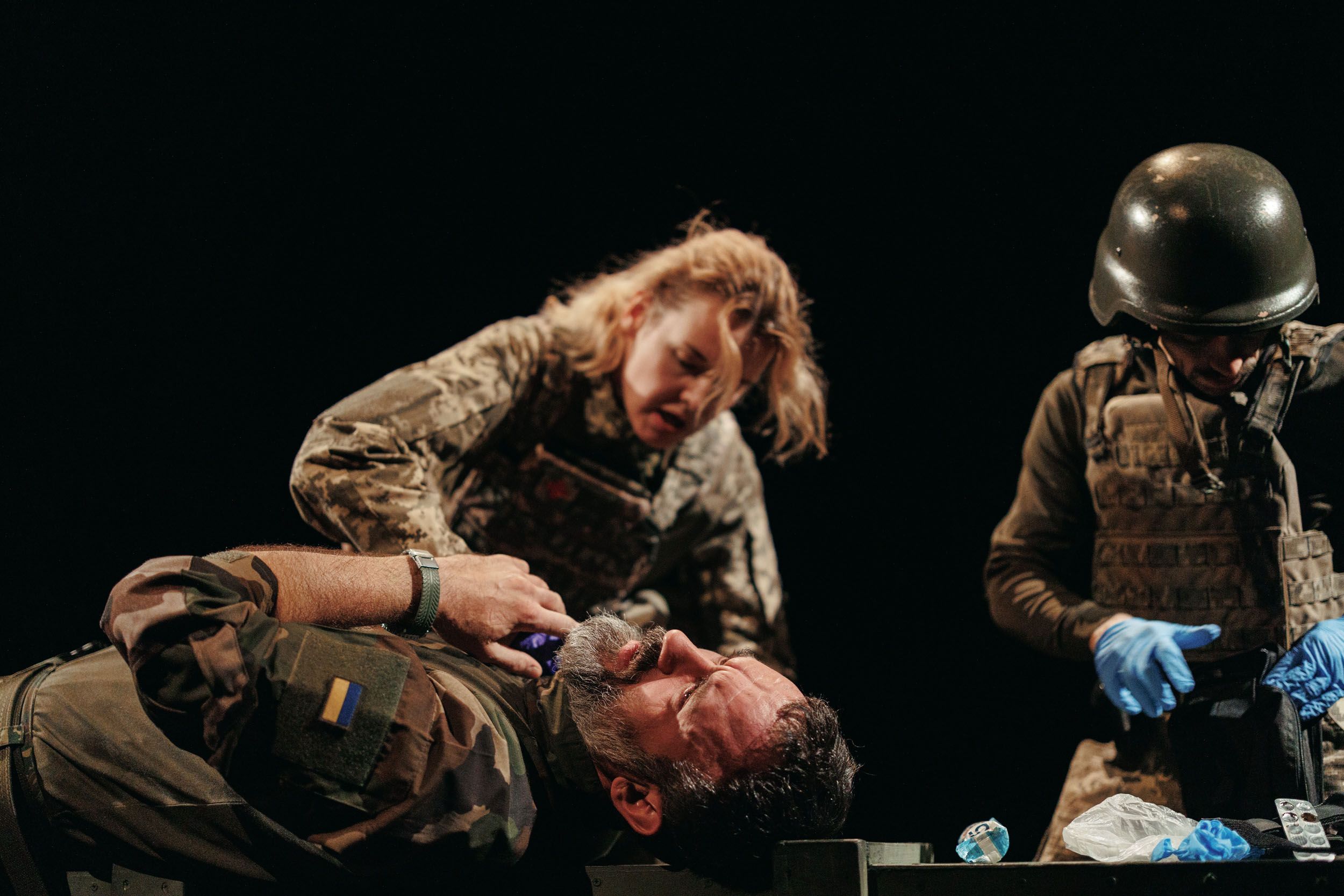 Среди участников театра есть и гражданские. Например, актрисы Полина и Анна, с которыми 24 Канал пообщался во время репетиции. На сцене женщины рассказывают историю, которая откликнется многим украинцам. Она о женщине, которая имеет российские корни со стороны отца, о том, как глубоко эти российские корни жили в ней, и о том – как их уничтожили.
