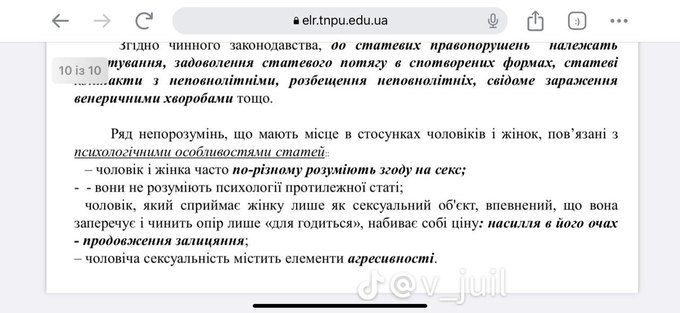 В материалах преподавателя также высказывается предположение, что "понимание согласия на секс" может отличаться между полами из-за отличных психологических характеристик. В этих материалах утверждается, что мужчины склонны проявлять элементы агрессивности в своей сексуальности, а также утверждается, что девушки "часто сами подстрекают к изнасилованию".