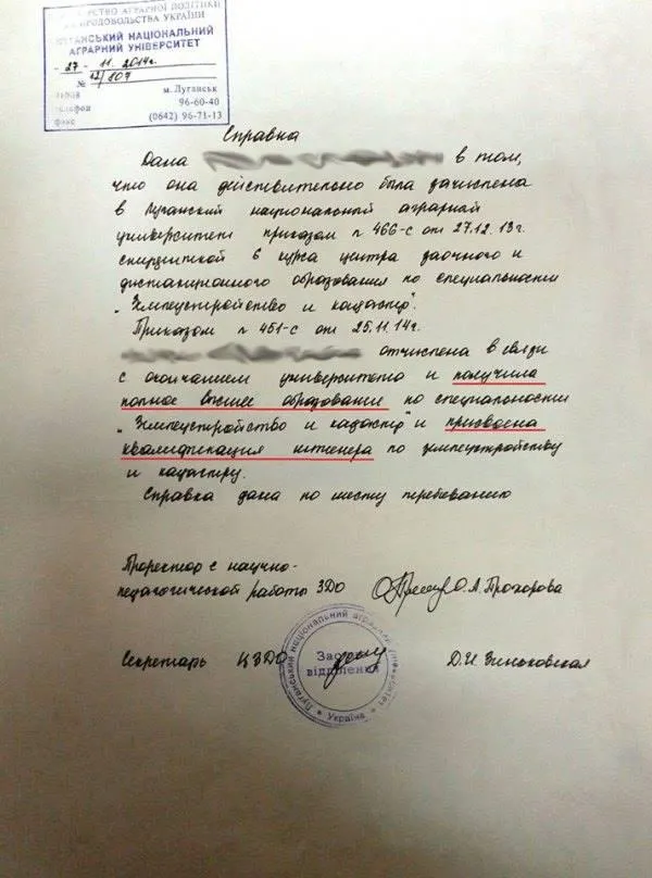 Фото "диплома", изданного в захваченном ЛНАУ поступило в редакцию informator.lg.ua.