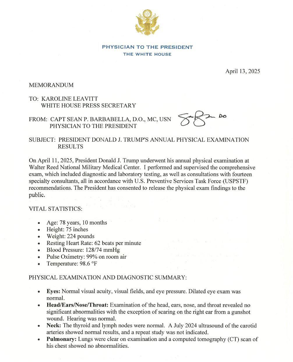 Белый дом опубликовал результаты медицинского обследования / Скриншоты