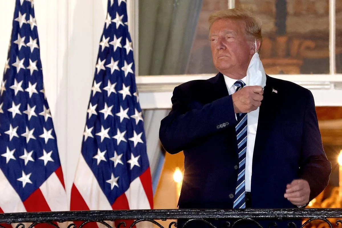 Дональд Трамп снимает маску на балконе Белого Дома / Фото Vox