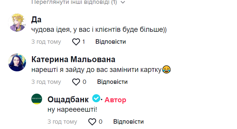 Команда Ощадбанка пошутила, что в кассах отделения будут показывать отрывок из сериала. Комментаторы сразу отметили, что старшее поколение не поймет такого новшества.