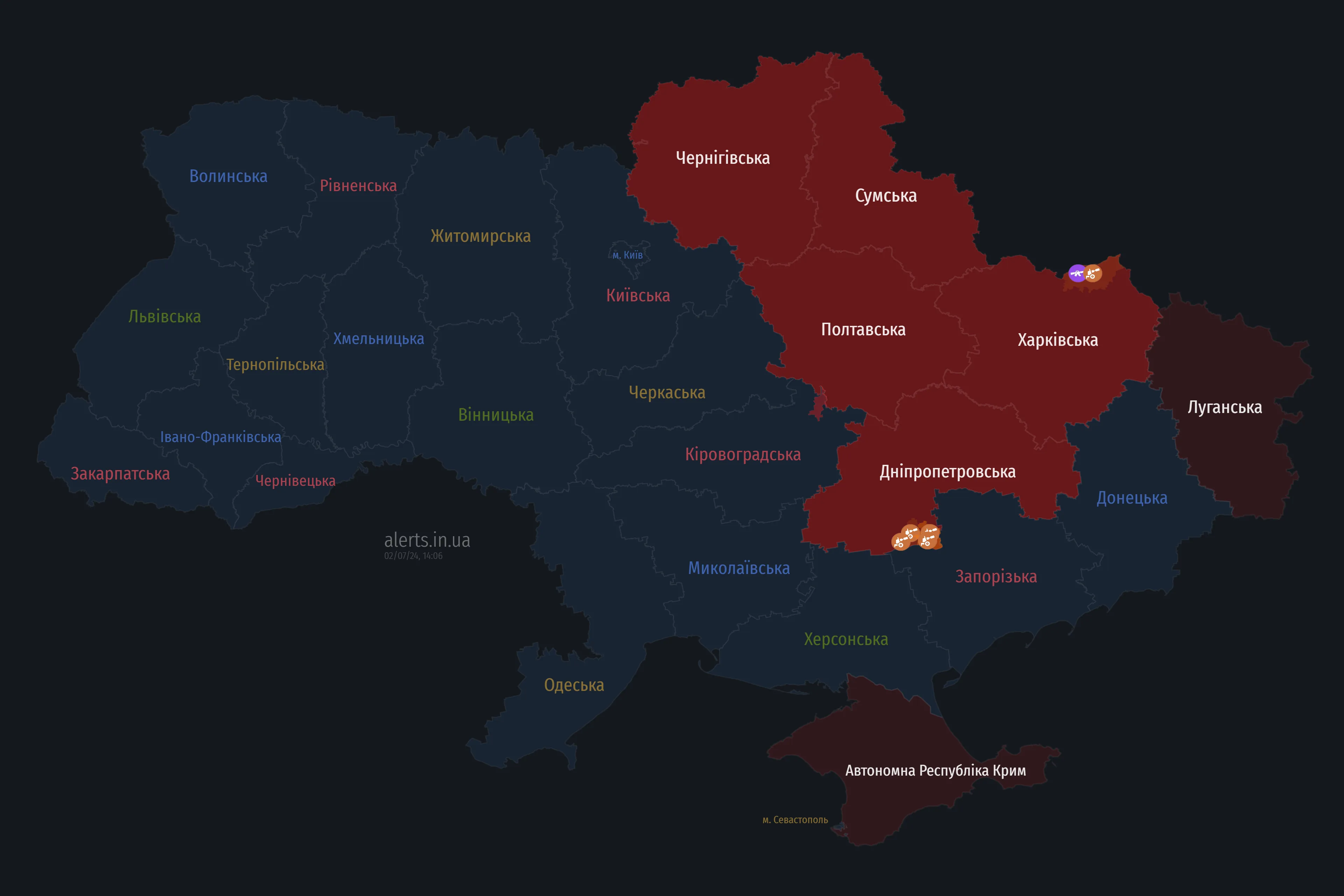 Где объявляли воздушную тревогу / Фото alerts.in.ua