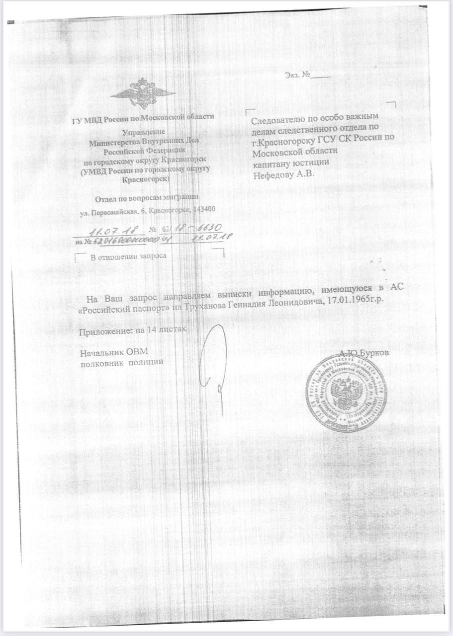 Справку Труханова из министерства внутренних дел России активист Сергей Стерненко получил из своих верифицированных источников. Опубликованный документ выдан в 2020 году.