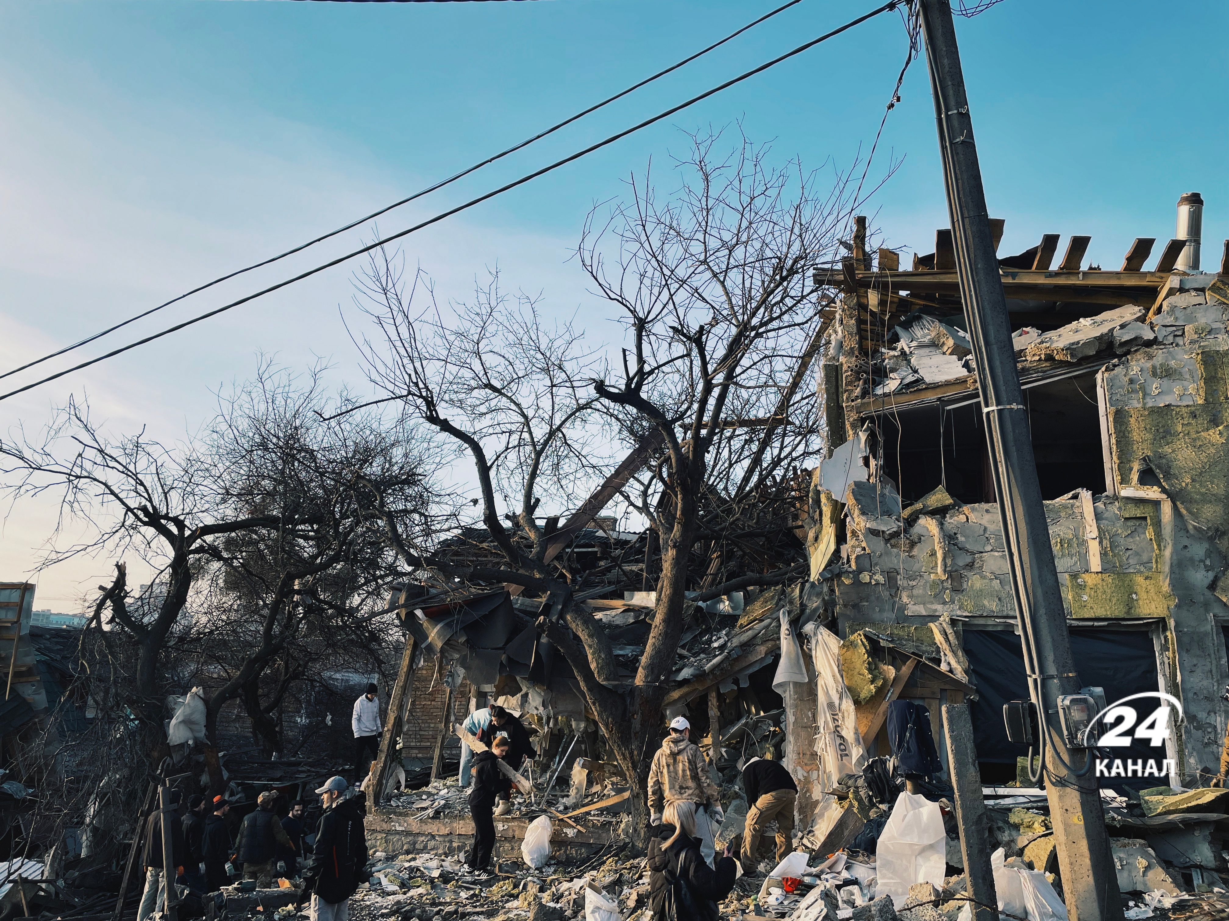 - Также ракетная атака нанесла много разрушений. Известно о повреждениях гостиниц, жилых домов, учебных заведений и автомобилей.