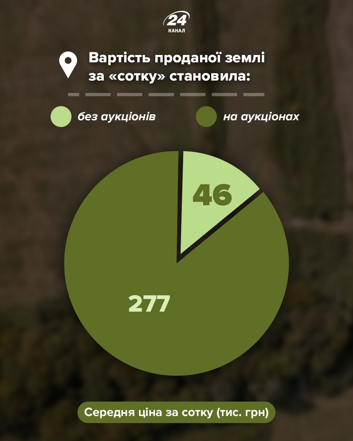 Земельные участки государственной или коммунальной собственности продаются или передаются в пользование отдельными лотами на конкурентных началах (по результатам аукционов – 24 Канал).