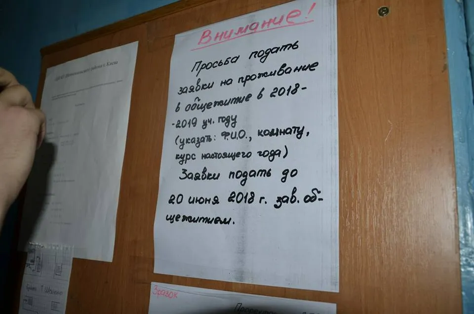 Объявления в общежитии КНУТКиТ имени Карпенко-Карого на русском языке