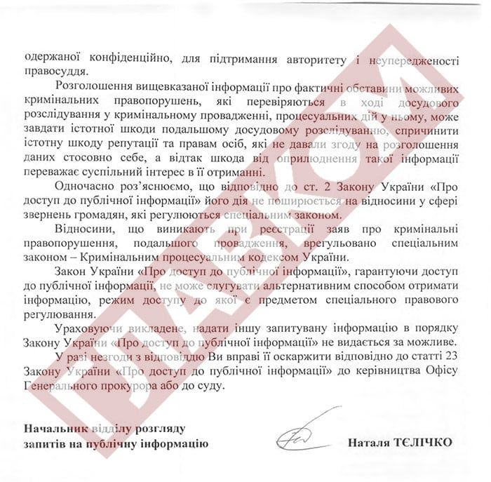Ответ Офиса Генпрокурора на запрос СМИ / Главком