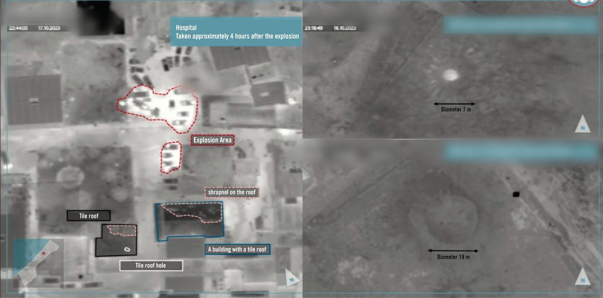 На следующее утро дроны ЦАХАЛ зафиксировали место, куда попала ракета, им оказалась автостоянка возле больницы. Фотографы не зафиксировали большой воронки, которую оставляют мощные израильские ракеты, не было там и значительных разрушений. Также начали появляться сообщения, что количество жертв Аль-Ахли существенно преувеличено палестинцами, и речь идет не о 800 убитых, а о десятках людей, что тоже, без сомнения, трагедия, но уже не с такими жуткими цифрами.