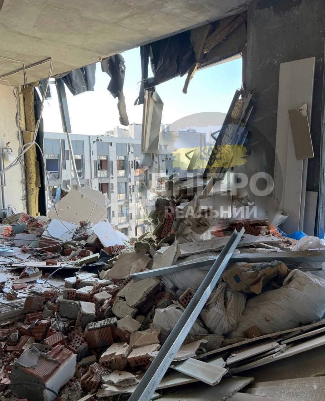 Представитель ГУ ГСЧС Украины в Днепропетровской области Сергей Коренный заявил, что в новостройке после ракетной атаки России на Днепр, разрушены 15 квартир. В общей сложности повреждено 60% квартир секции жилого комплекса.