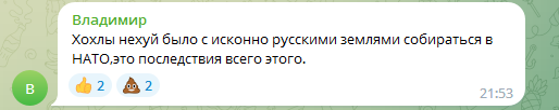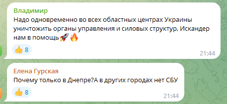 Заметим, что граждане страны-террориста не скрывали своего восторга от ракетных обстрелов. Под распространёнными фото и видео они оставили большое количество циничных и абсурдных комментариев. В частности: