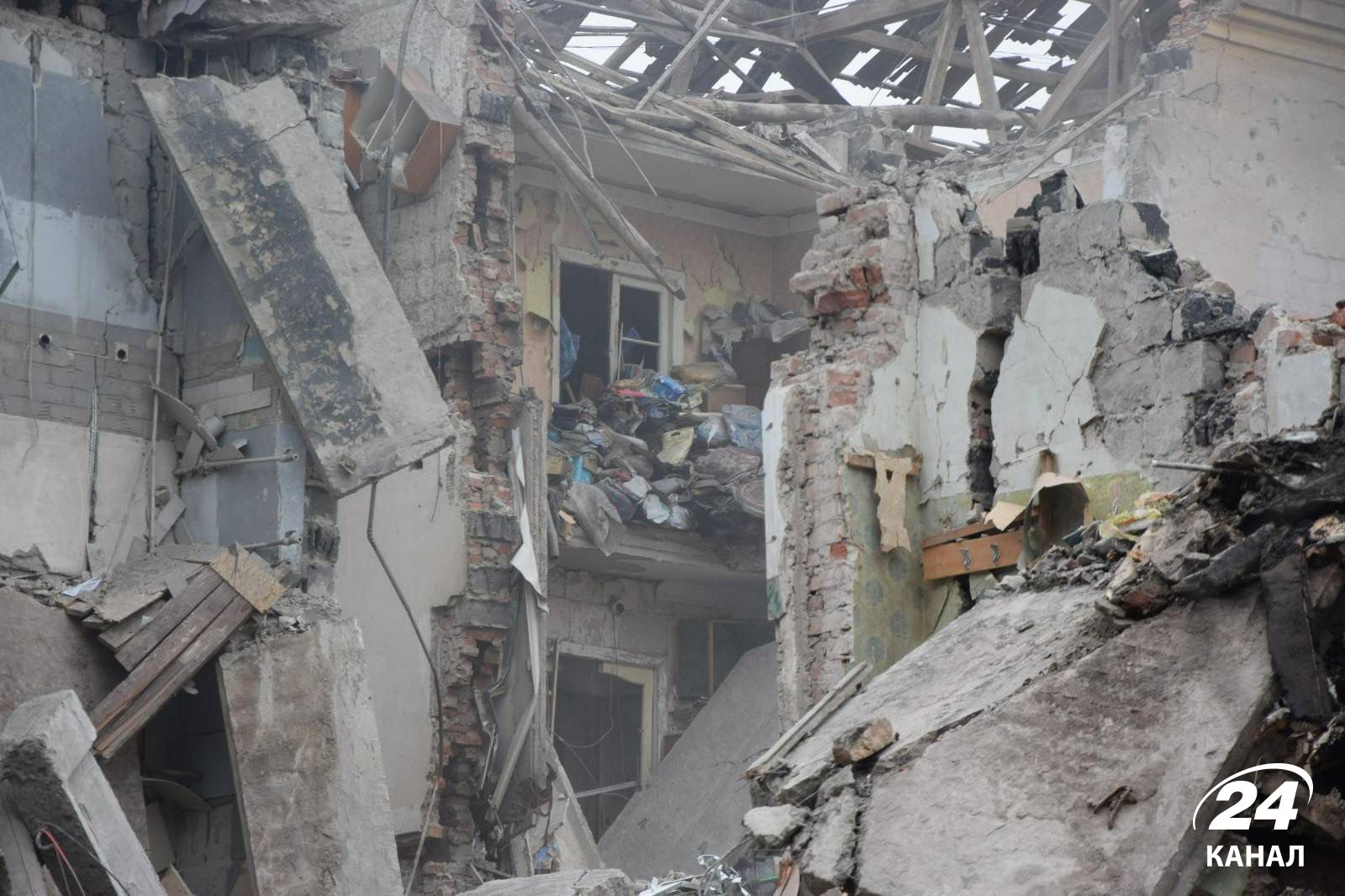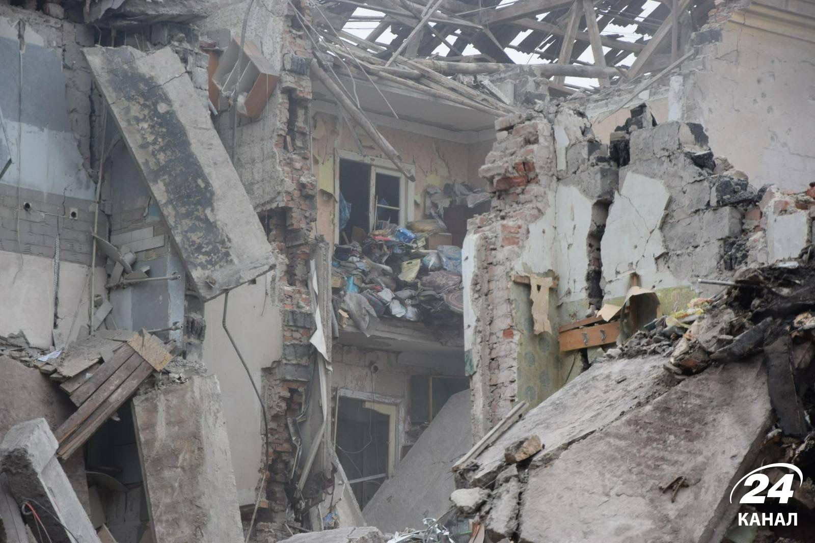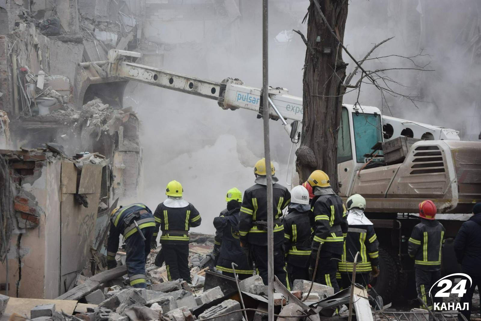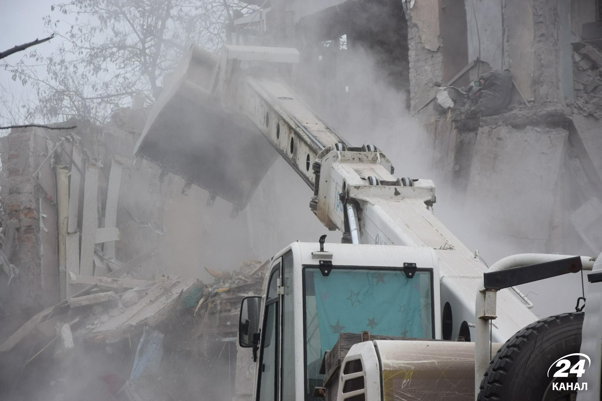 Спасатели по состоянию на 15:30 еще разбирали завалы. Из четырехэтажного дома было вывезено около 600 тонн строительных обломков. В фоторепортаже 24 Канала смотрите кадры, что происходит на месте атаки.