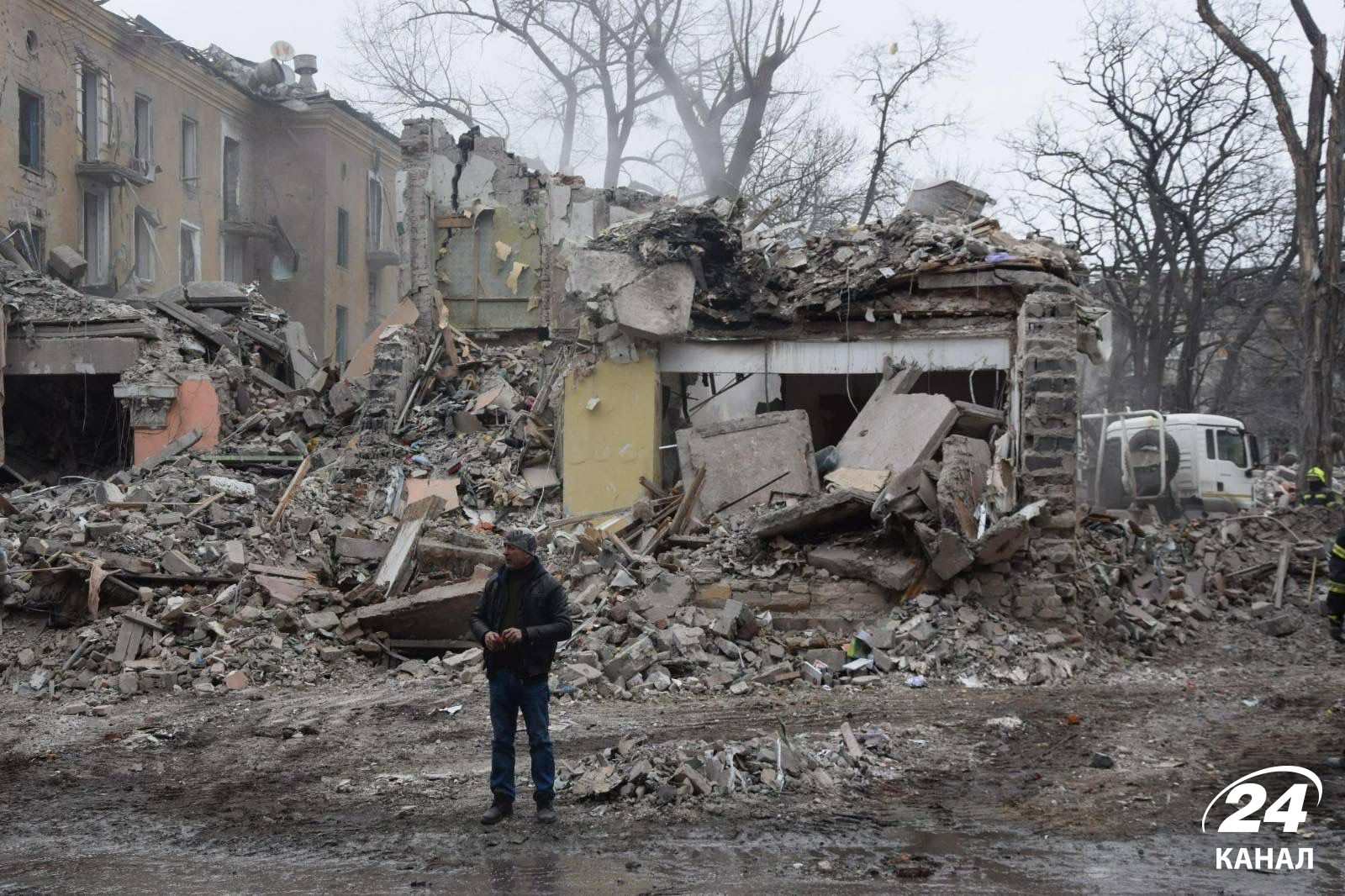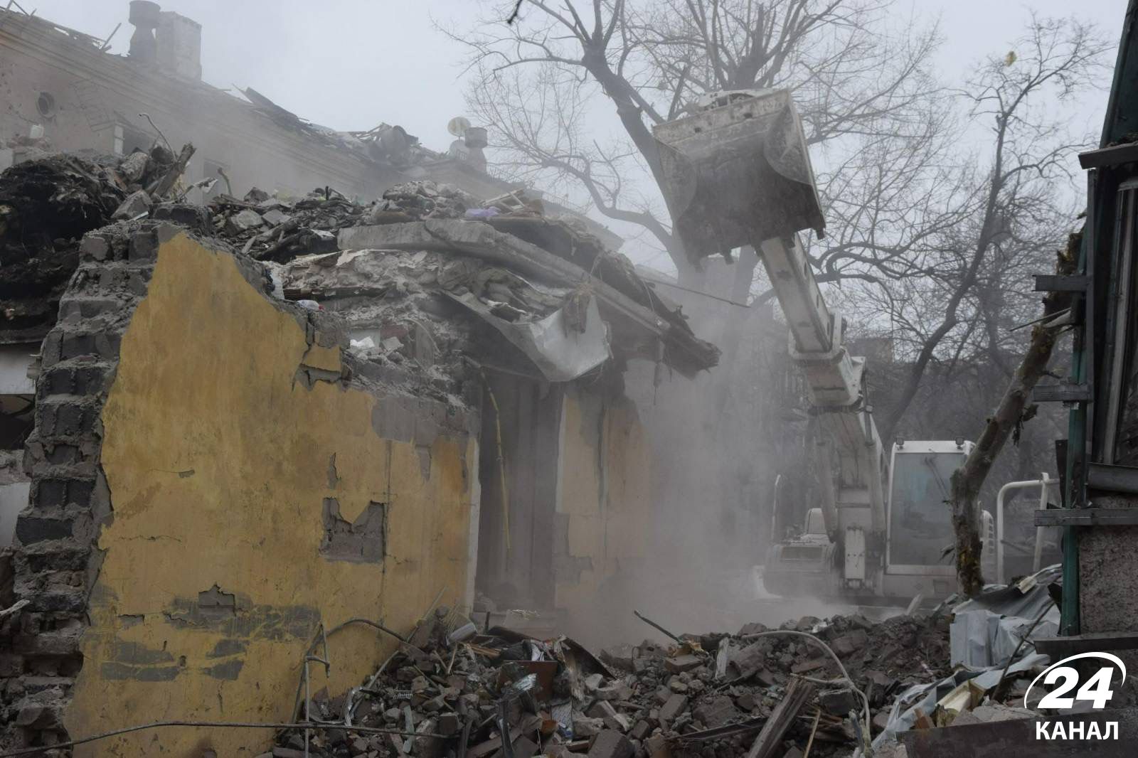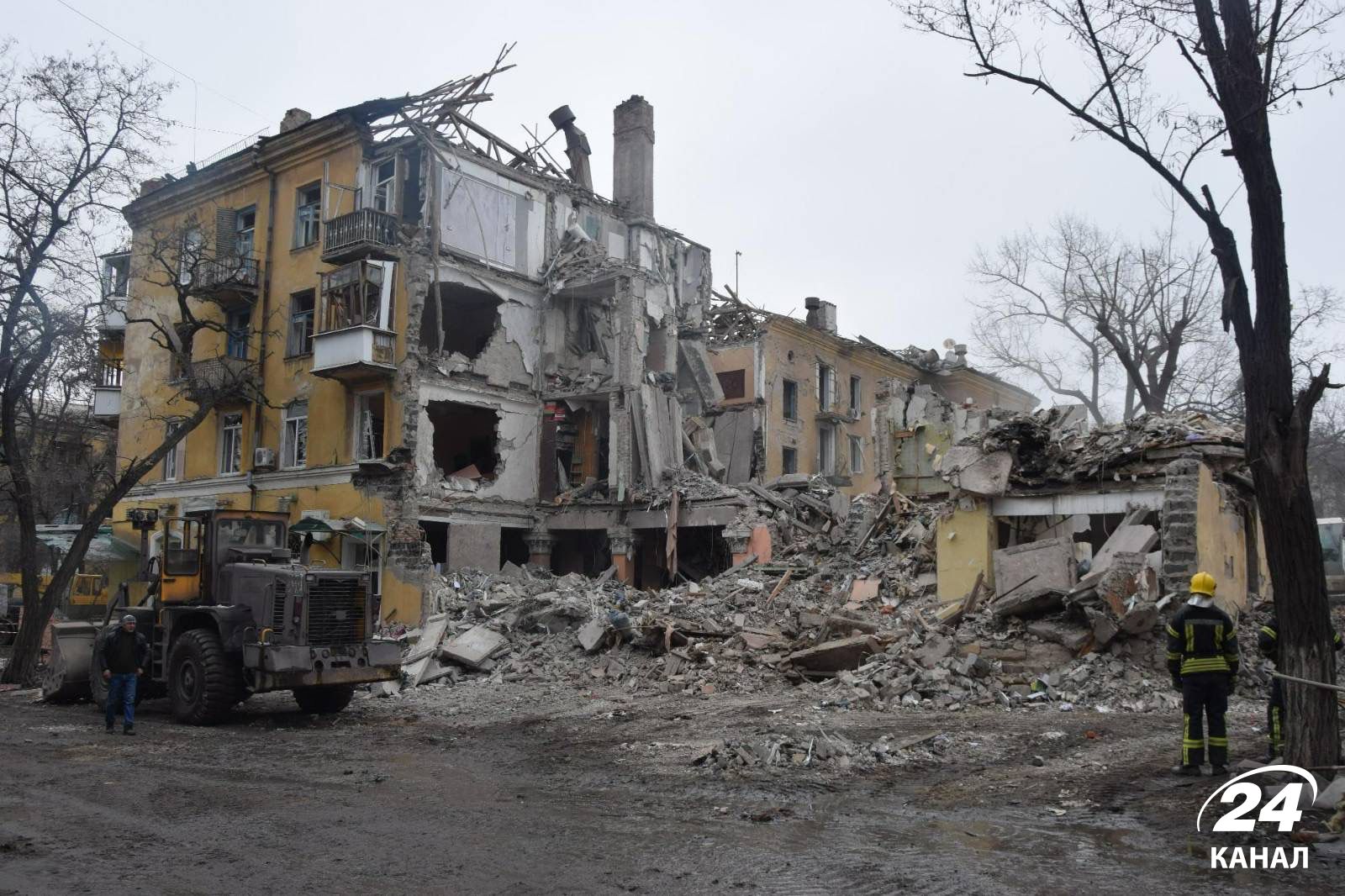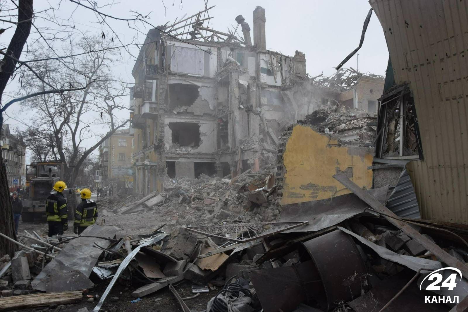Спасатели по состоянию на 15:30 еще разбирали завалы. Из четырехэтажного дома было вывезено около 600 тонн строительных обломков. В фоторепортаже 24 Канала смотрите кадры, что происходит на месте атаки.
