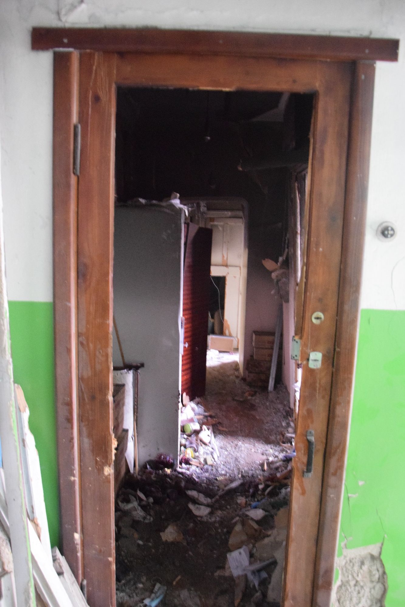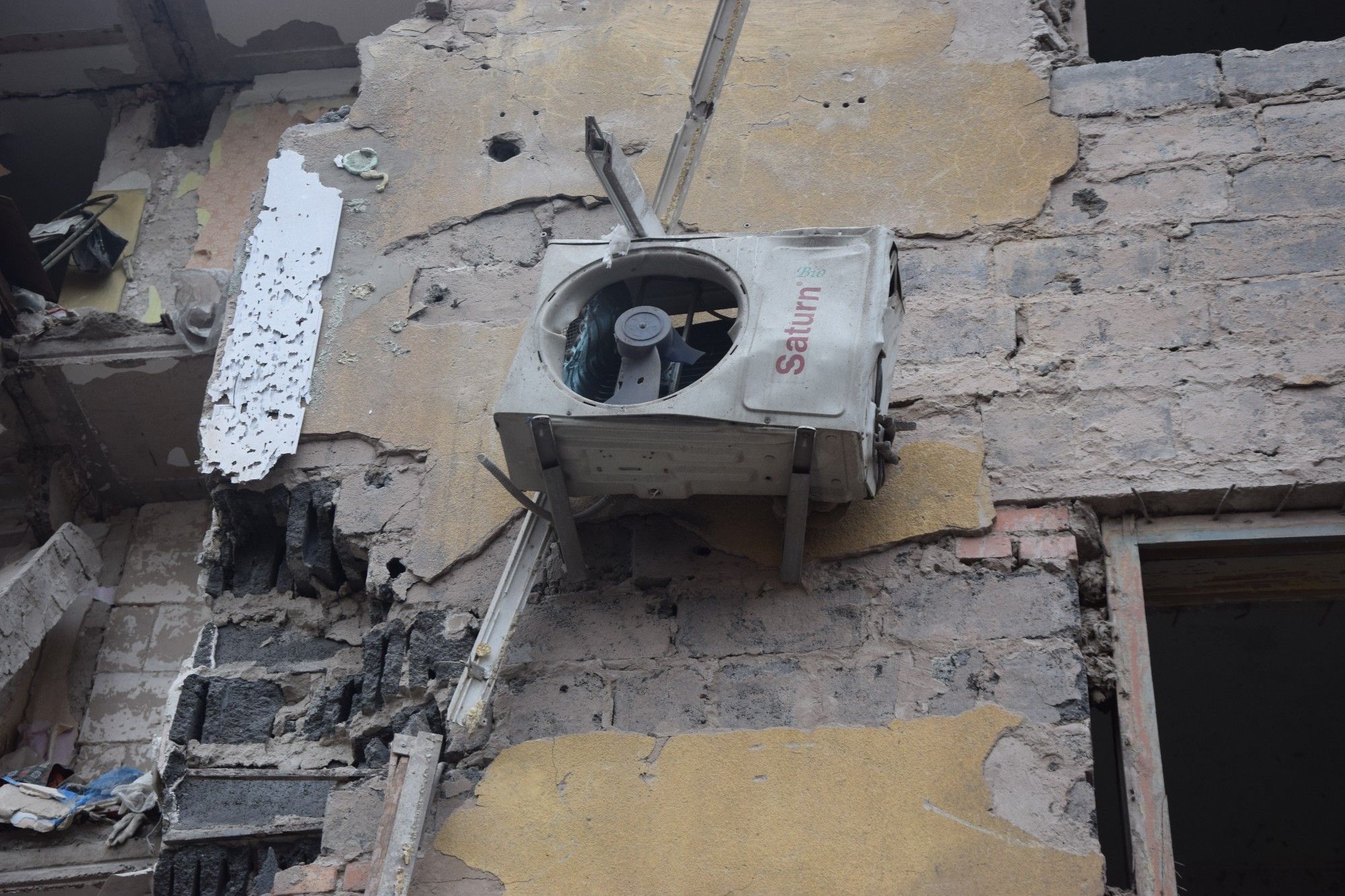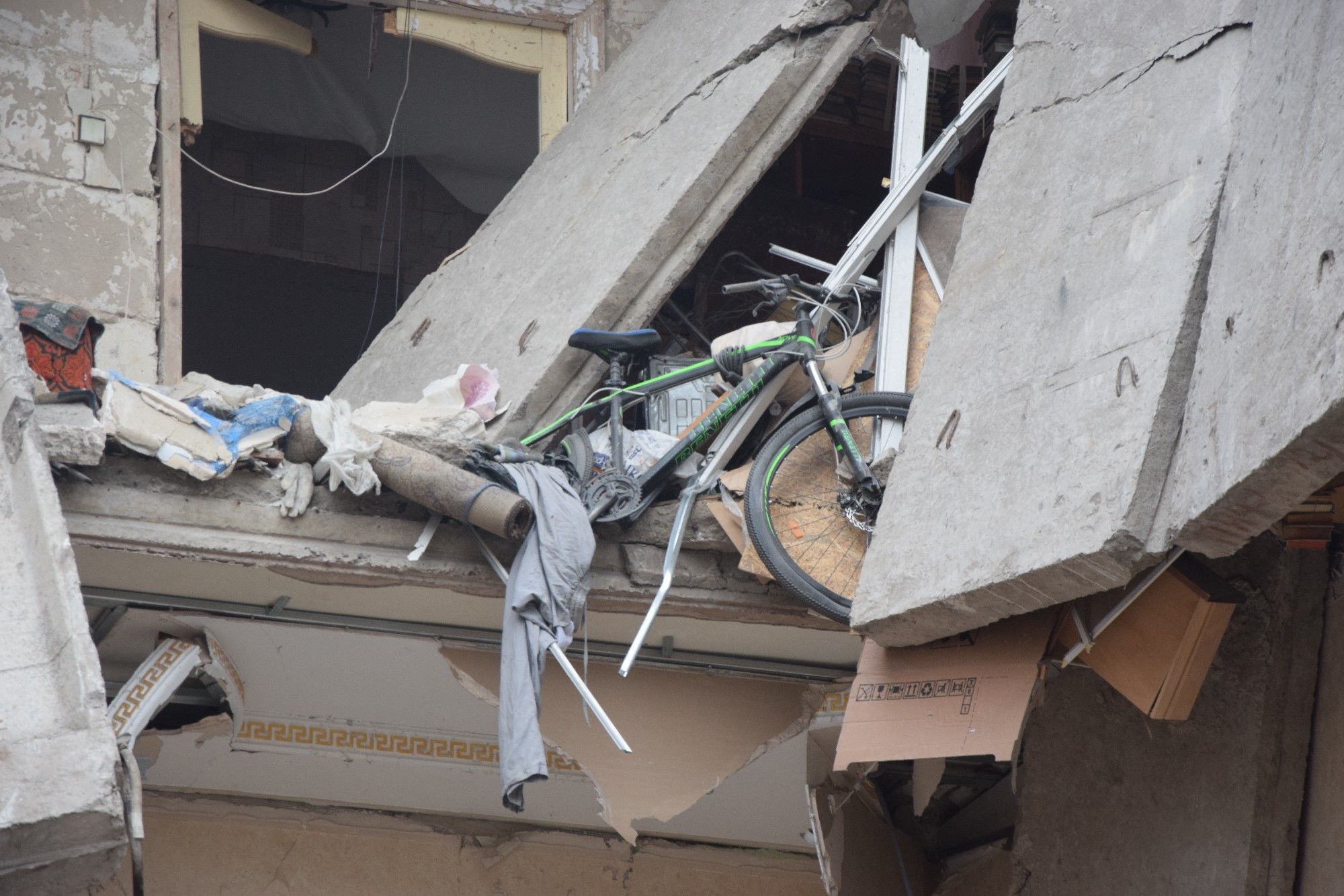 Из-за аварийного состояния здания заходить туда запрещено. Однако жители ищут способы, чтобы забрать уцелевшие вещи. В частности, спускают их на веревках.